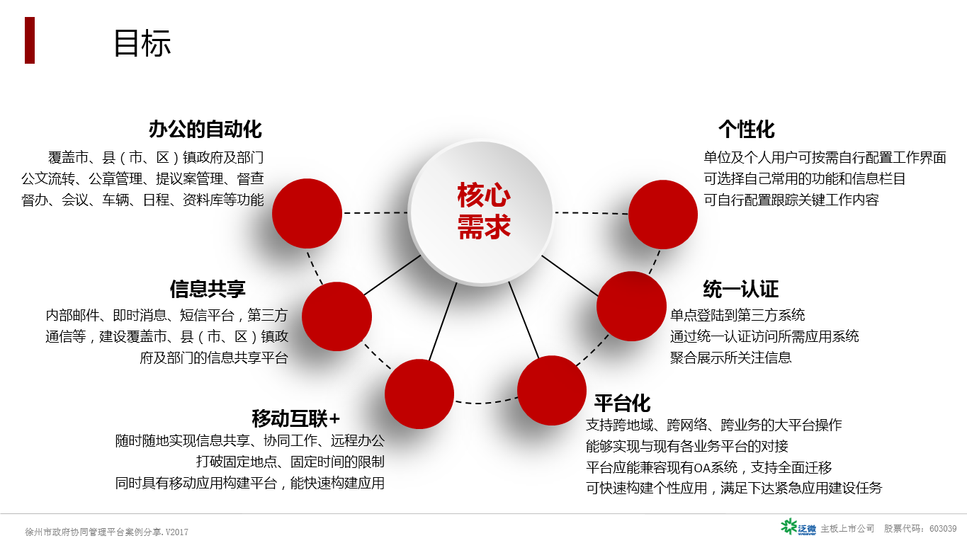 目標(biāo)是在徐州市電子政務(wù)外網(wǎng)上,應(yīng)用先進(jìn)成熟的計算機和通信技術(shù),按照協(xié)同、實用、共享、定制、安全、移動、開放的原則,構(gòu)建“一站式、一體化”、高質(zhì)量、高效率、智能化的辦公自動化平臺,實現(xiàn)覆蓋市、縣(市、區(qū))鎮(zhèn)、社區(qū)街道政府及部門,涵蓋機關(guān)日常辦公事務(wù)處理的幾乎全部事宜的網(wǎng)上協(xié)同辦公、移動辦公。通過更加科學(xué)、系統(tǒng)、人性化的平臺設(shè)計和配套的運行機制、制度建設(shè),為領(lǐng)導(dǎo)決策和機關(guān)辦公提供信息服務(wù),從而提高各級黨政機關(guān)及其工作人員的辦公自動化水平和辦公效率,真正促進(jìn)實現(xiàn)無紙化辦公。